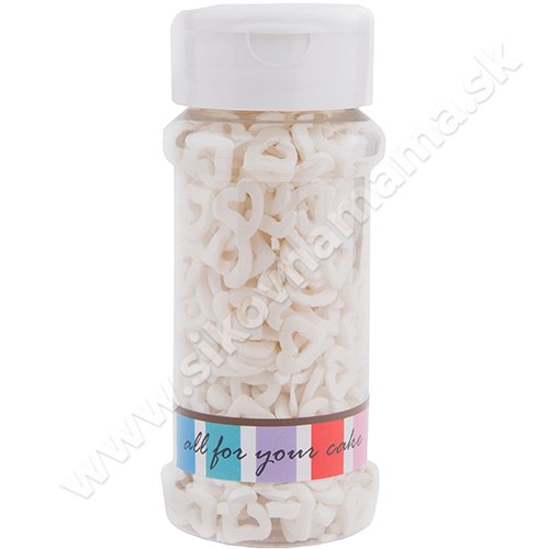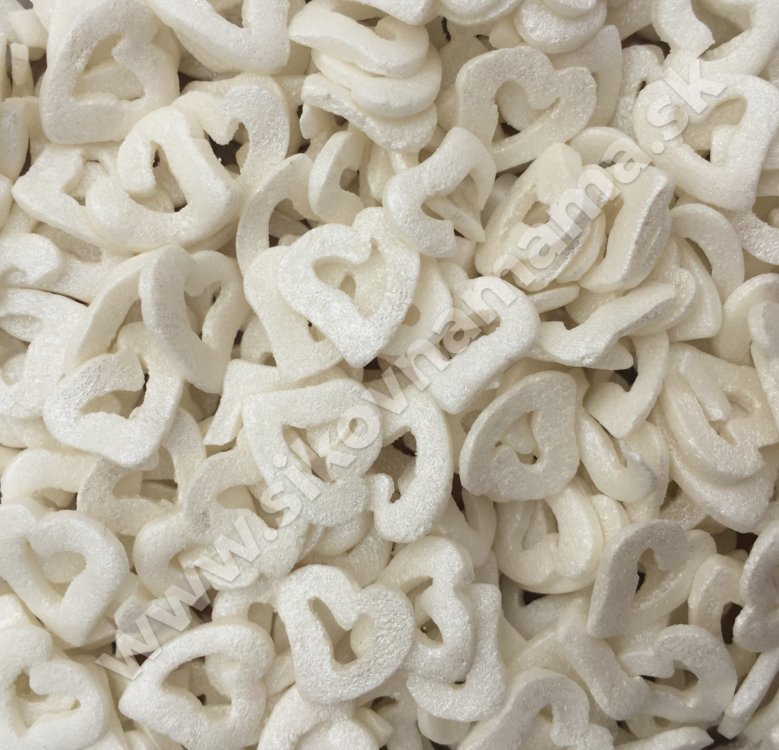Krásny cukrový posyp vhodný na ozdobu Vašich dezertov. Srdiečka su v bielej perleťovej farbe.