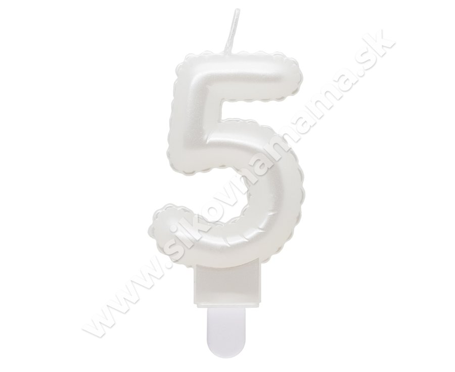 G sviečka číslo 5 biela v tvare balónika