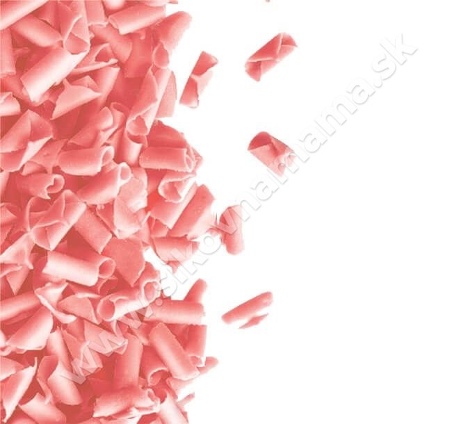 Lahodné čokoládové hobliny s jahodovou príchuťou, ako elegantná dekorácia na dezerty a torty.