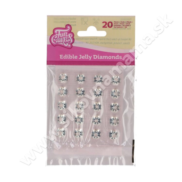 Krásne jedlé diamanty na zdobenie cupcakes, tort a pod. Použite ich napríklad na oslavu alebo svadobnú tortu či narodeninové torty pre mladé dievčatá. Keď diamant pred použitím zmrazíte, ľahko ich vyberiete z obalu.