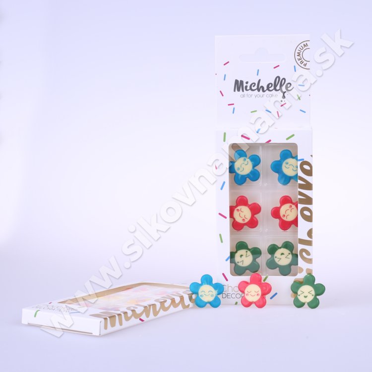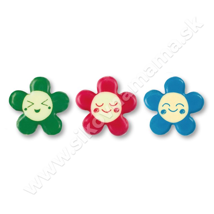 V balení nájdete 2 zelené, 2 červené, 2 modré smajlíky/kvietky.