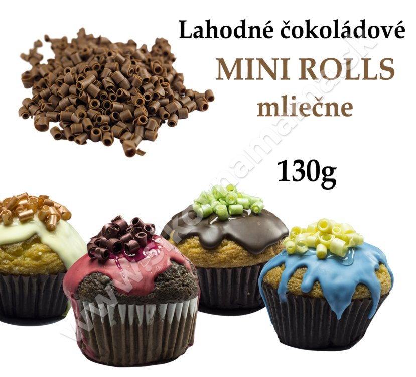 Lahodné čokoládové mini rolky z kvalitnej mliečnej čokolády, ako elegantná a moderná dekorácia na zákusky a torty.