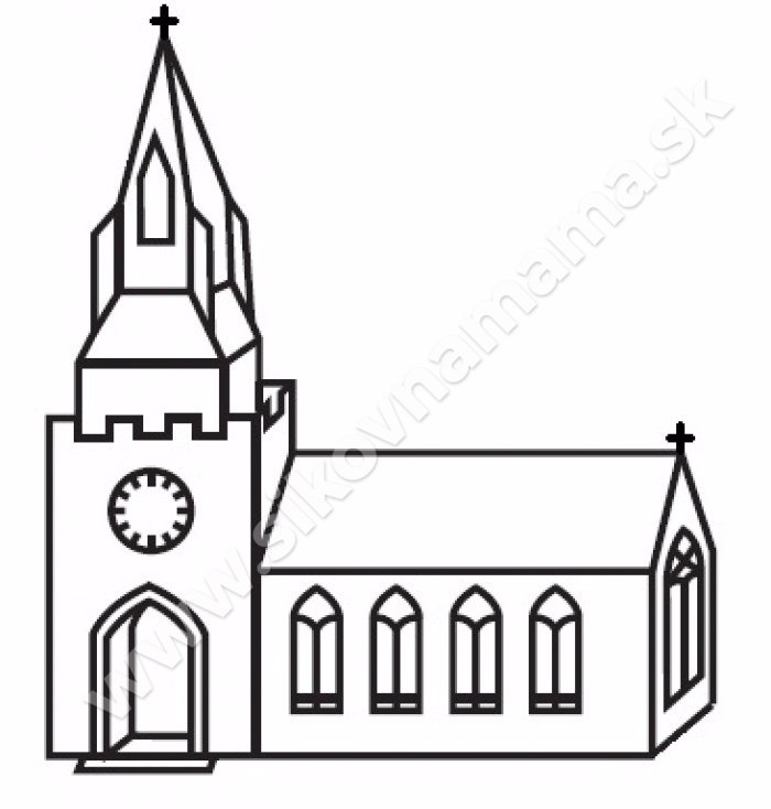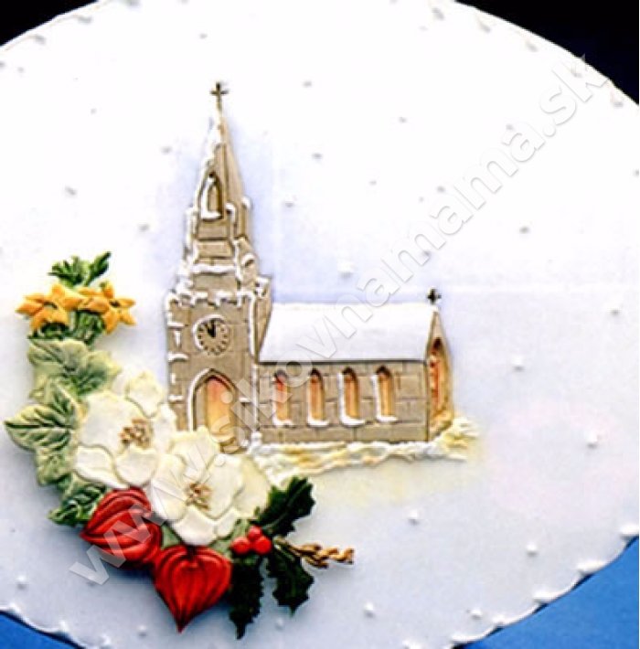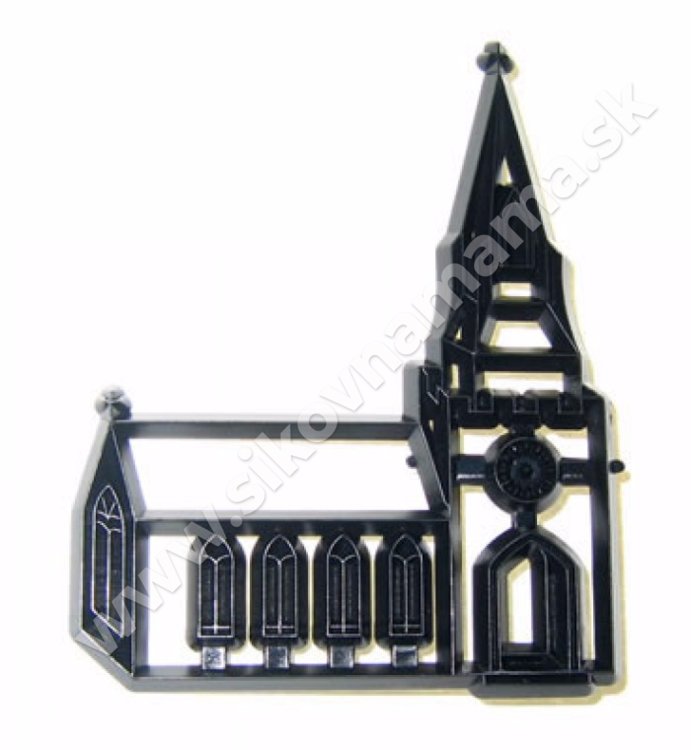 Plastová pomôcka na vykrojenie kostola z poťahovej hmoty.