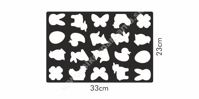 Vynikajúca pre rýchlu prípravu pečiva s veľkonočnými motívmi, vykrojí naraz až 20 kusov. Vybavená vyberateľnou vložkou pre ľahké odstránenie zvyškov vykrojeného cesta. Vhodná pre linecké aj perníkové pečivo. Vyrobená z prvotriedneho odolného plastu, vhodná do umývačky.
