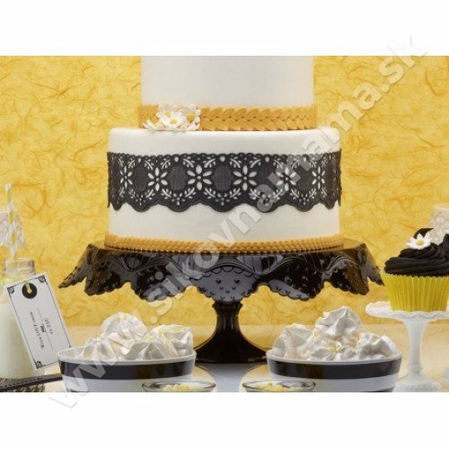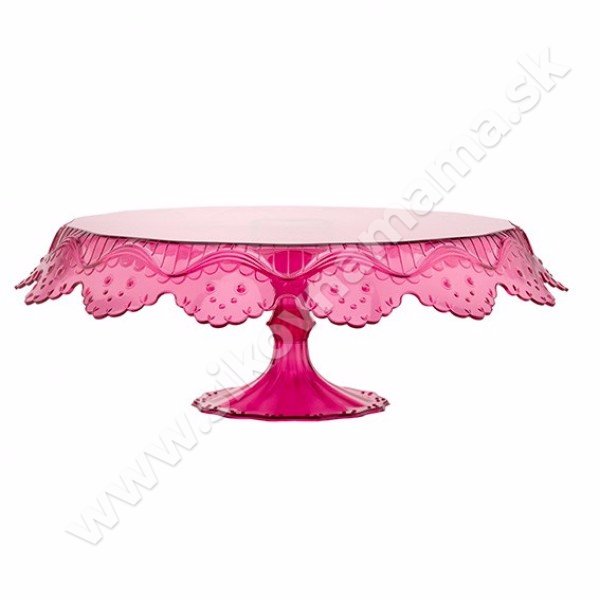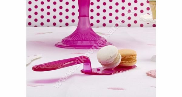 Elegantný plastový stojan pod tortu. Súčasťou balenie je aj plastová cyklaménová lopatka.